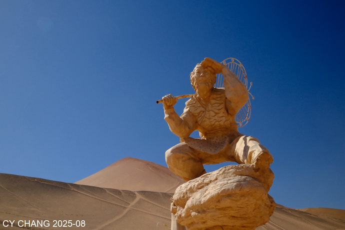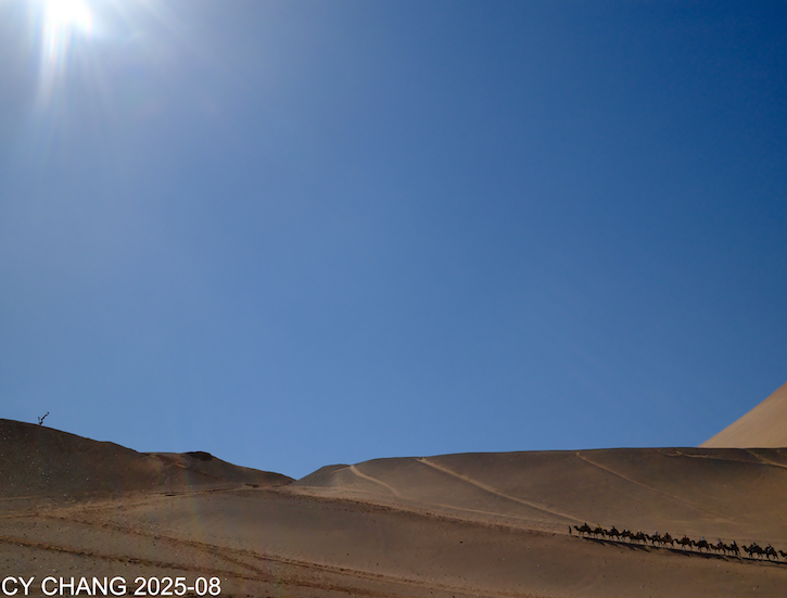 In the distance, another camel caravan was heading off to attack the Xiongnu. Actually, there’s a drive-up viewing platform at the top of the dune, but I didn’t go up this time. From a distance, I could see how the marching troops returned.