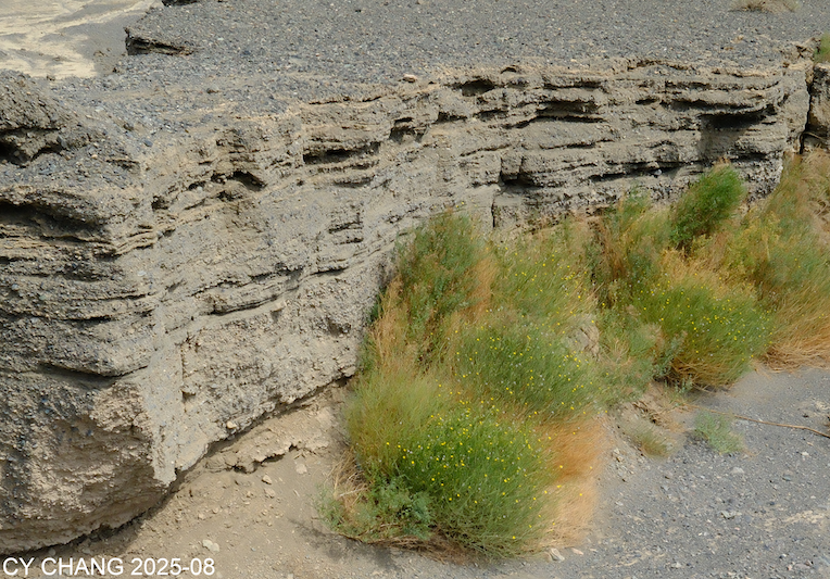 It’s rare to get a moment in the photo myself. In just an hour or so, the Arc’teryx and I were sunburned like boiled shrimp. The mountains on the left are the Tianshan Mountains. The clean, clear stream must be melted snow, a marvel of nature. In the scorching desert heat, I gazed at the snowcapped mountains in the distance and the pure water flowing beneath my feet, nourishing the greenery.